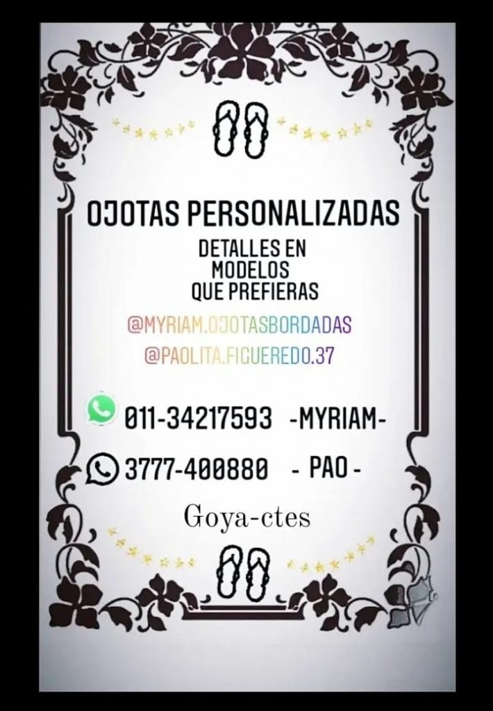 🥿Ojotas bordadas con materiales en piedras perlas mostacillas y mucho amor hechas a mano los bordados cocidas con tanzas. Contacto: Teléfono: 1134217593 – 3777 400880Dirección: Barrio Santa Ana calle 2 número 860Atención: en cualquier horario.